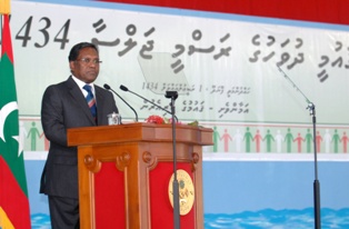 President Mohamed Waheed has said Maldives is forced to think about and take measures against the changes that the “national character” is undergoing. Speaking at a ceremony to celebrate the National Day in L. Fonadhoo, the President said, ‘If the number of migrant workers continue to increase, [Maldivian] national character will be lost.’ He added that there were approximately 111,000 migrant workers on work visa, while illegal migrant workers number more than 40,000. The President said for every three Maldivians there was a migrant worker, and if the number increased at its current rate of 20% per year, migrant population will surpass that of the Maldivian population in 6 years.